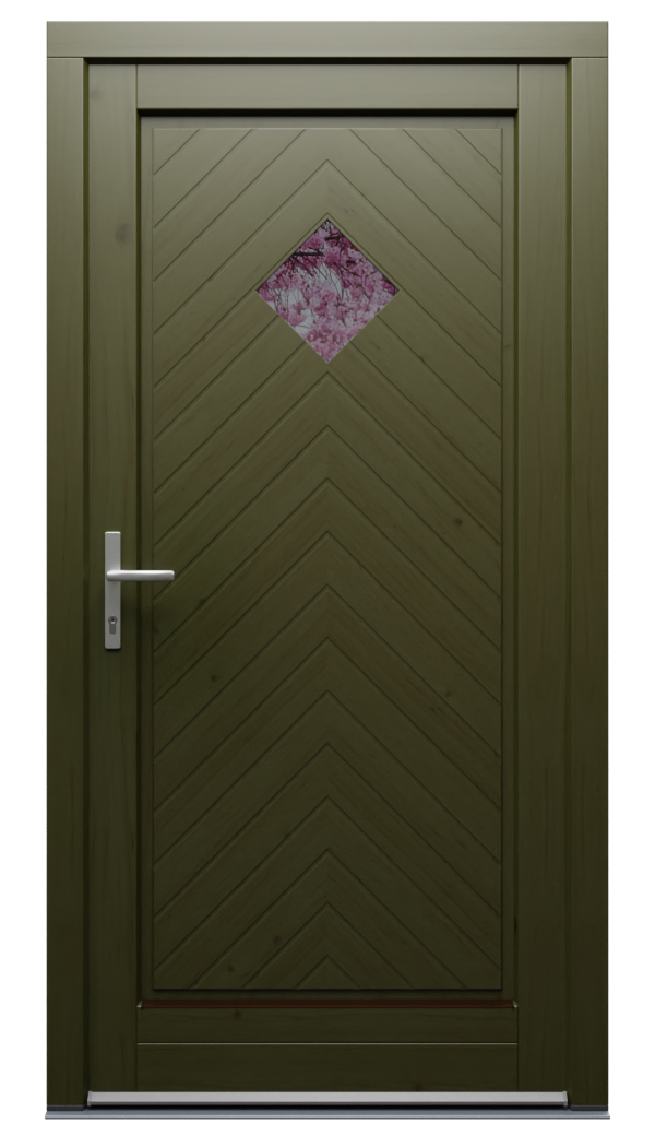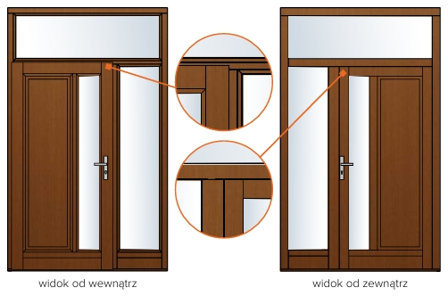 - szkło ornamentowe lub barwione – dodające wyrazistości drzwiom;