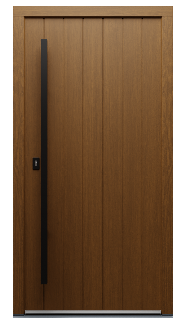 Mowa o klamkach. W drzwiach wejściowych muszą być nie tylko efektowne i dobrze dopasowane, ale też ułatwiać obsługę często ciężkich skrzydeł drzwiowych. I tu oferujemy nie tylko klasyczne klamki w kilkunastu kolorach, ale także pochwyty. To bardzo ciekawe wzorniczo rozwiązanie, bo pochwyty mogą mieć od 40 do nawet 220 cm długości. Szczególnie na nowoczesnych minimalistycznych drzwiach wyglądają bardzo efektownie. To nie wszystko. Pochwyty mogą być częścią domu inteligentnego – zamontowane w nich np. czytniki linii papilarnych są elementem biometrycznej kontroli dostępu do domu.
